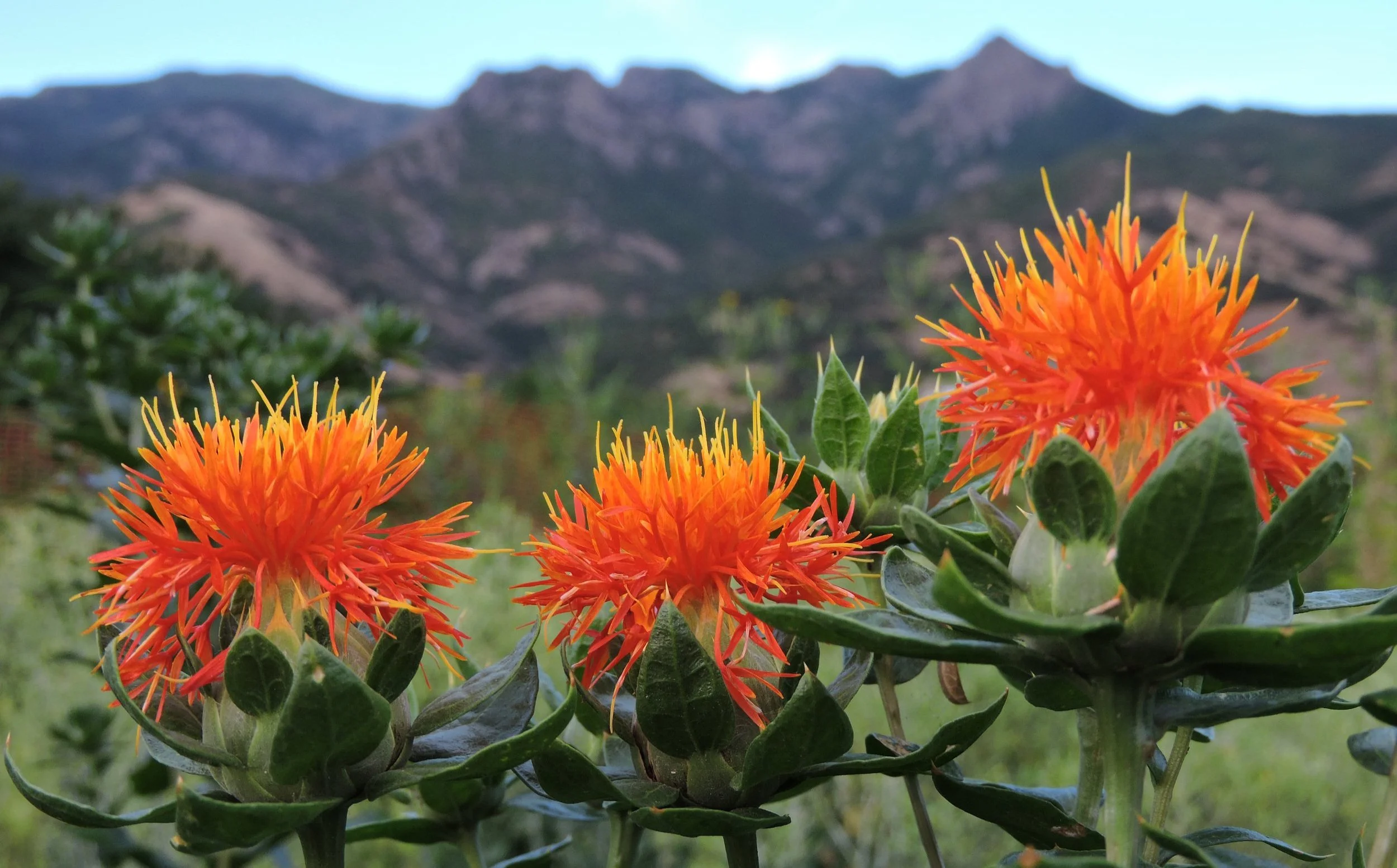 Domesticated over 4,000 years ago in the Fertile Crescent, safflower is one of humanity’s oldest cultivated crops. The progenitor of this species has long been theorized to be Carthamus oxyacanthus, Carthamus palaestinus, or Carthamus persicus, all native to the region of domestication. Recent DNA sequencing, however, has identified Carthamus palaestinus as safflower’s closest living relative.
